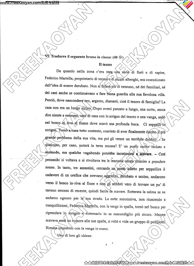 上海外国语大学2006年考研真题-意大利语二外(4)