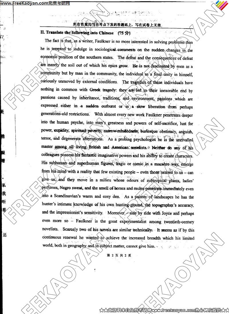 专业课考研经验 本站小编 FreeKaoyan 2018-01-23上海外国语大学2006年考研真题-日汉互译