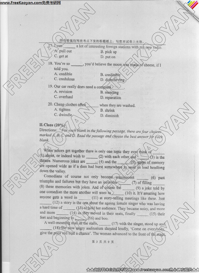 专业课考研经验 本站小编 FreeKaoyan 2018-01-23上海外国语大学2006年考研真题-朝鲜语综合