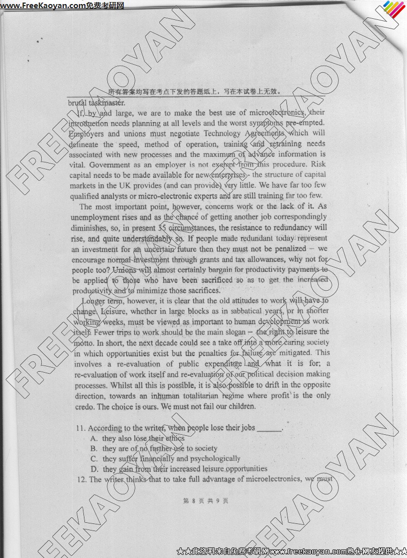 专业课考研经验 本站小编 FreeKaoyan 2018-01-23上海外国语大学2006年考研真题-英汉互译