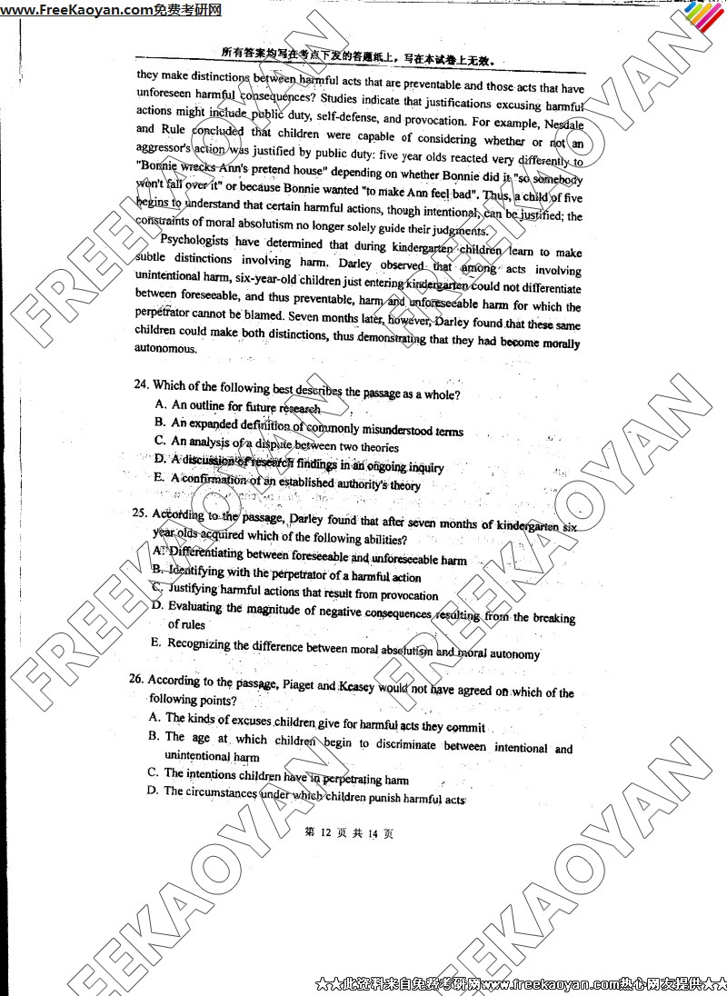专业课考研经验 本站小编 FreeKaoyan 2018-01-23上海外国语大学2006年考研真题-英汉互译