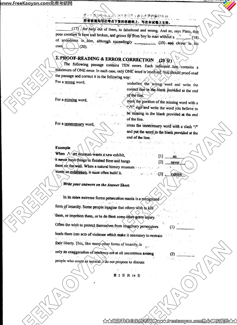 上海外国语大学2006年考研真题-英语综合(2)