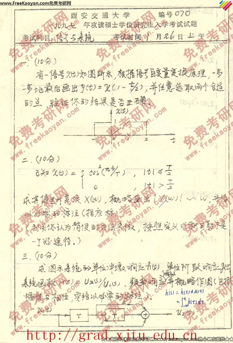 专业课考研经验 本站小编 FreeKaoyan 2018-01-23西安交通大学1996年考研真题-信号与系统