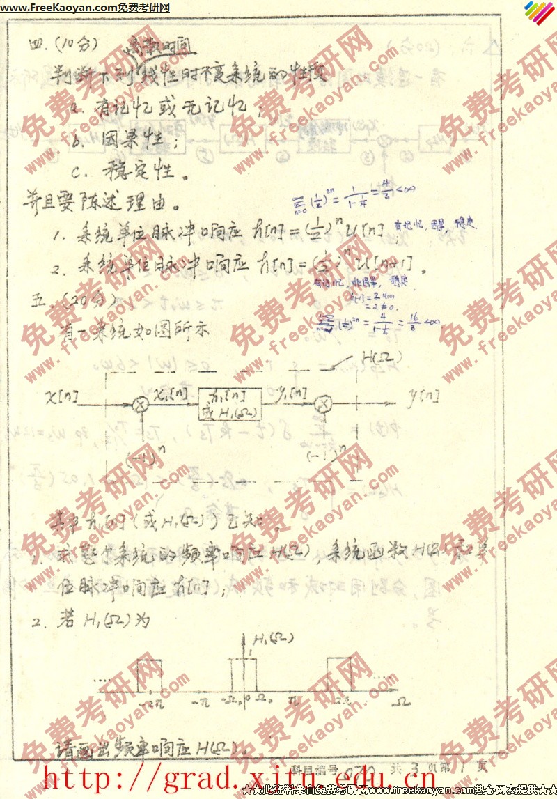 专业课考研经验 本站小编 FreeKaoyan 2018-01-23西安交通大学1996年考研真题-信号与系统