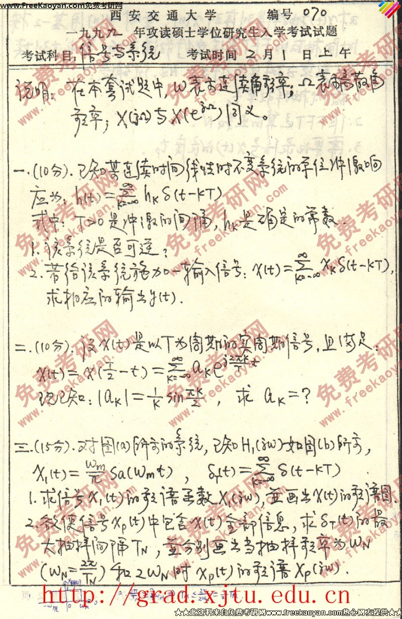 专业课考研经验 本站小编 FreeKaoyan 2018-01-23西安交通大学1996年考研真题-信号与系统