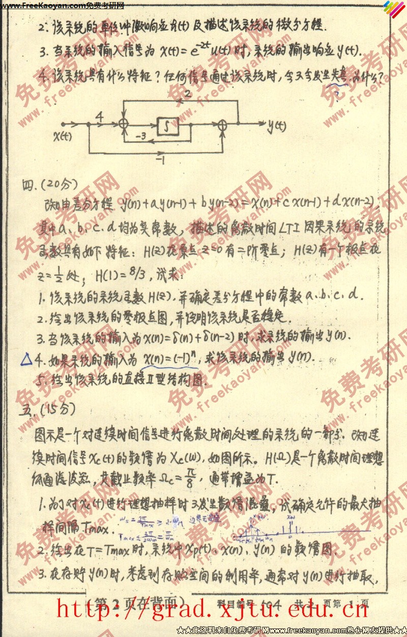 西安交通大学2000年考研真题-信号与系统(2)