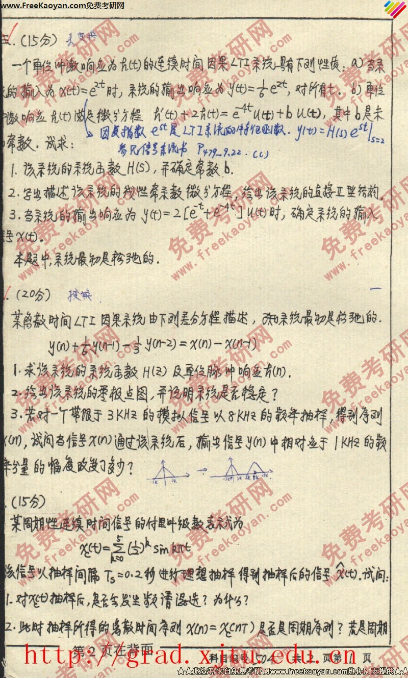 专业课考研经验 本站小编 FreeKaoyan 2018-01-23西安交通大学2000年考研真题-信号与系统