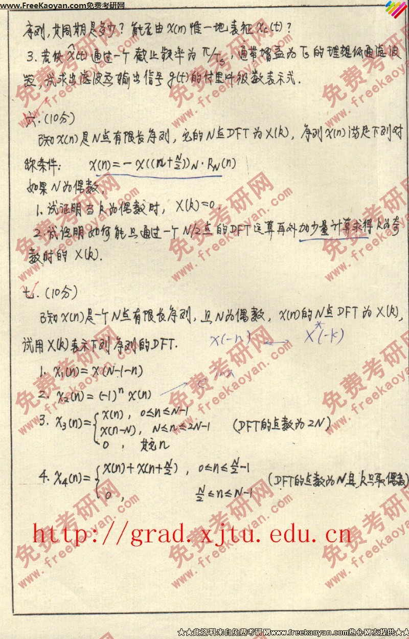 专业课考研经验 本站小编 FreeKaoyan 2018-01-23西安交通大学2000年考研真题-信号与系统