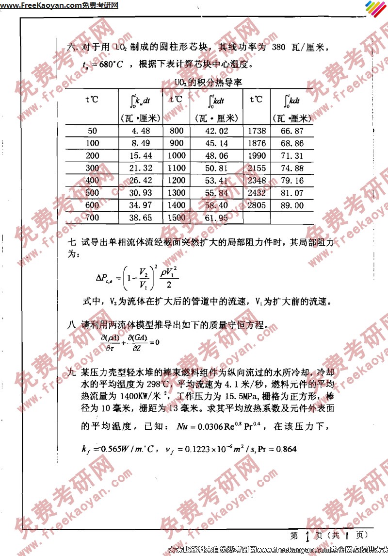 西安交通大学2004年考研真题-核工程技术基础(2)