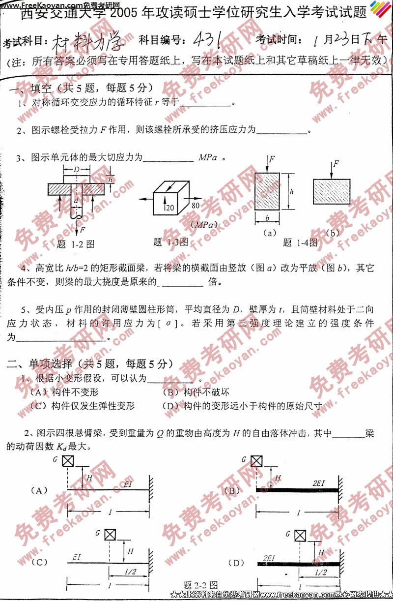 专业课考研经验 本站小编 FreeKaoyan 2018-01-23西安交通大学2004年考研真题-核工程技术基础