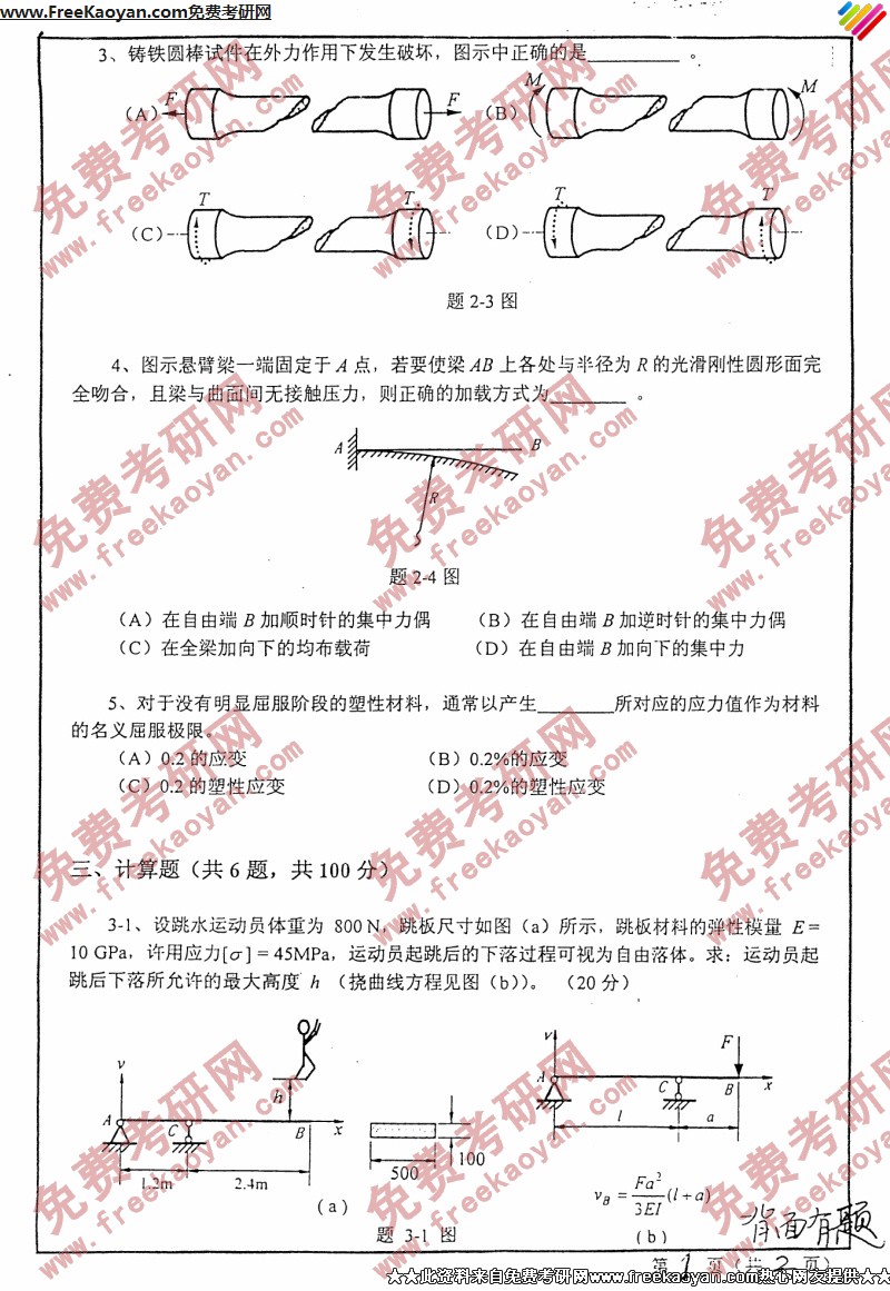 相关话题/西安交通大学 考研真题 材料力学