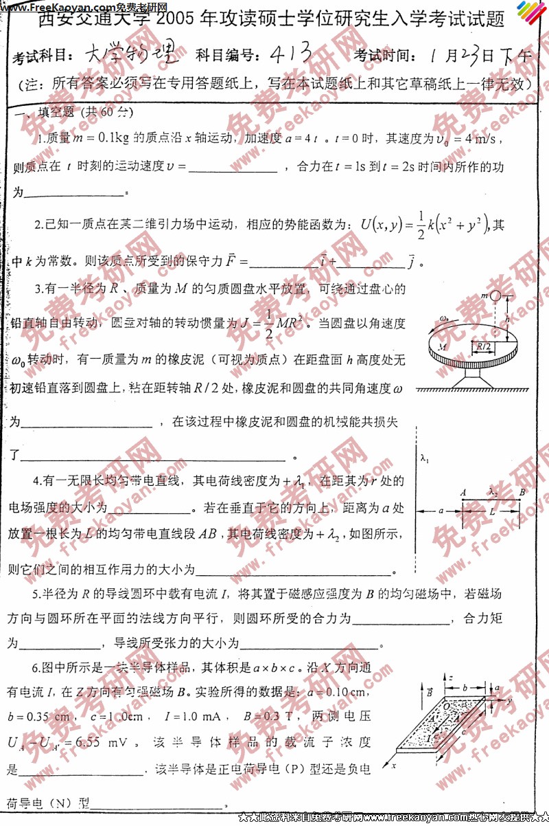 专业课考研经验 本站小编 FreeKaoyan 2018-01-23西安交通大学2005年考研真题-半导体物理