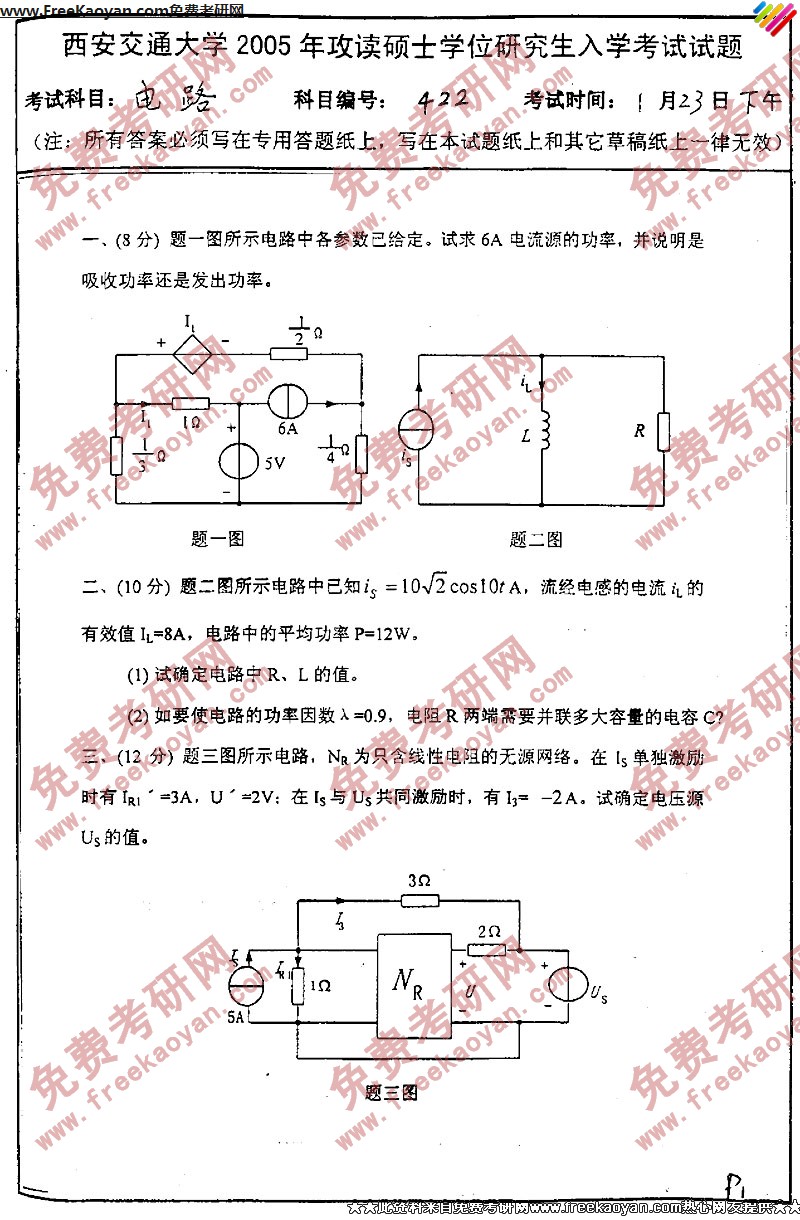专业课考研经验 本站小编 FreeKaoyan 2018-01-23西安交通大学2004年考研真题-电路