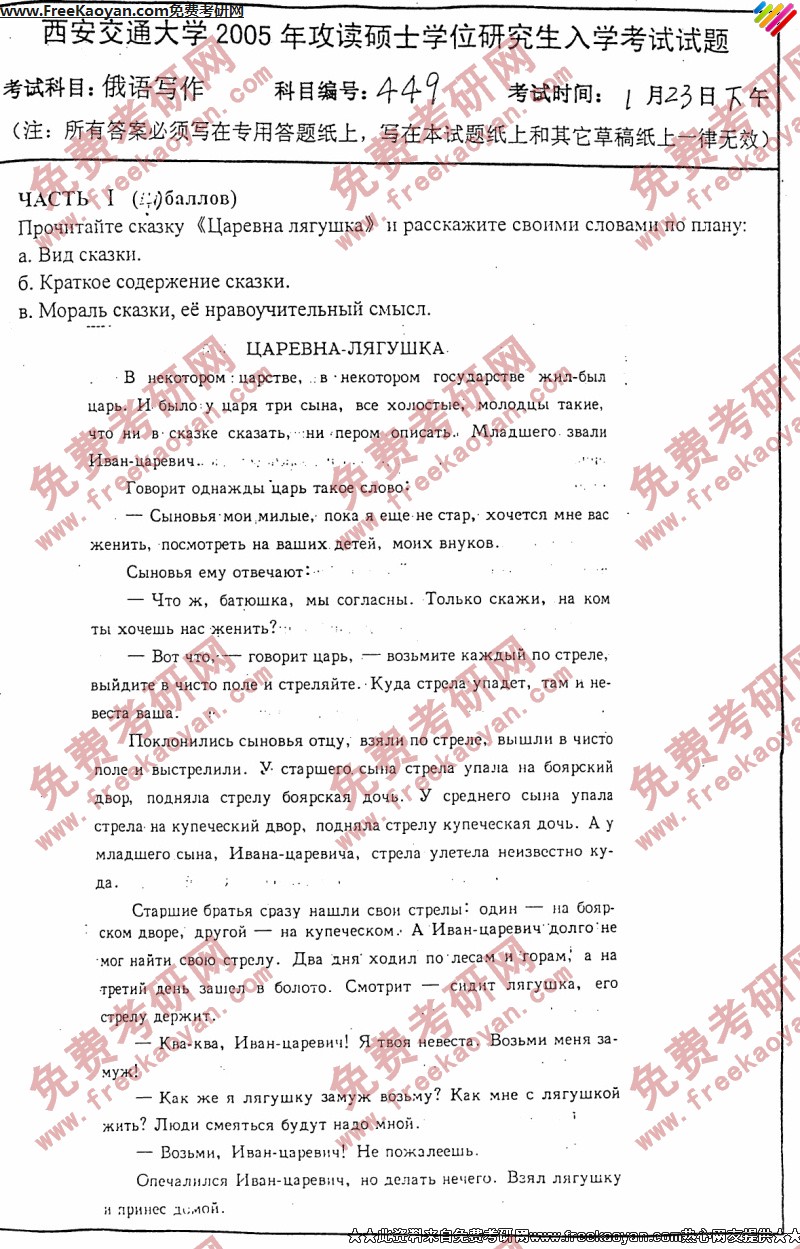 专业课考研经验 本站小编 FreeKaoyan 2018-01-23西安交通大学2005年考研真题-俄语基础