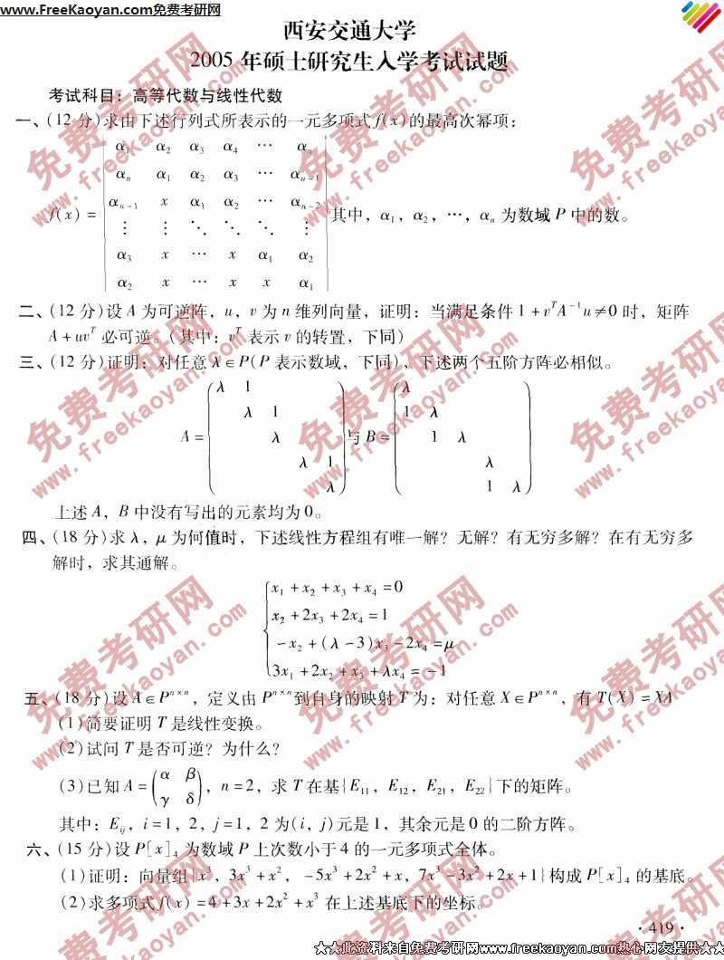 相关话题/考研真题 西安交通大学 线性代数 高等代数