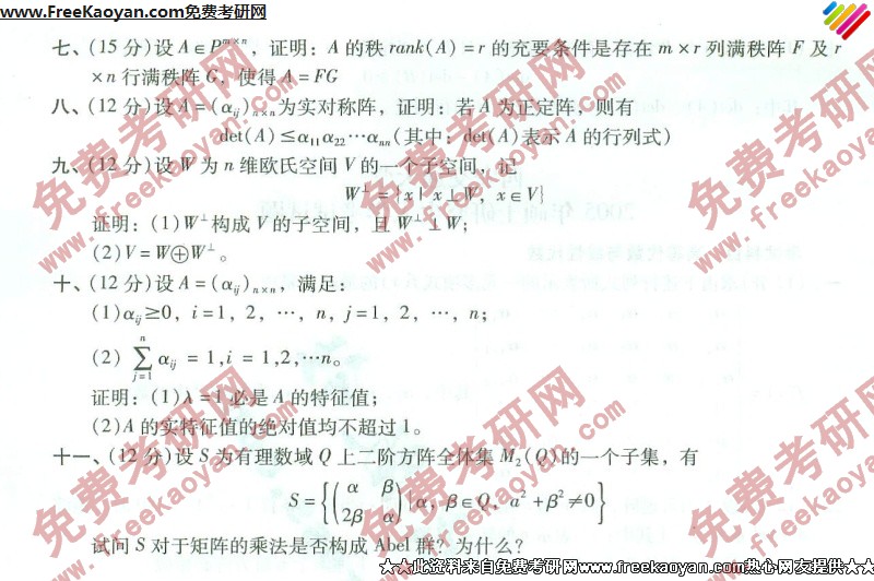 相关话题/考研真题 西安交通大学 线性代数 高等代数