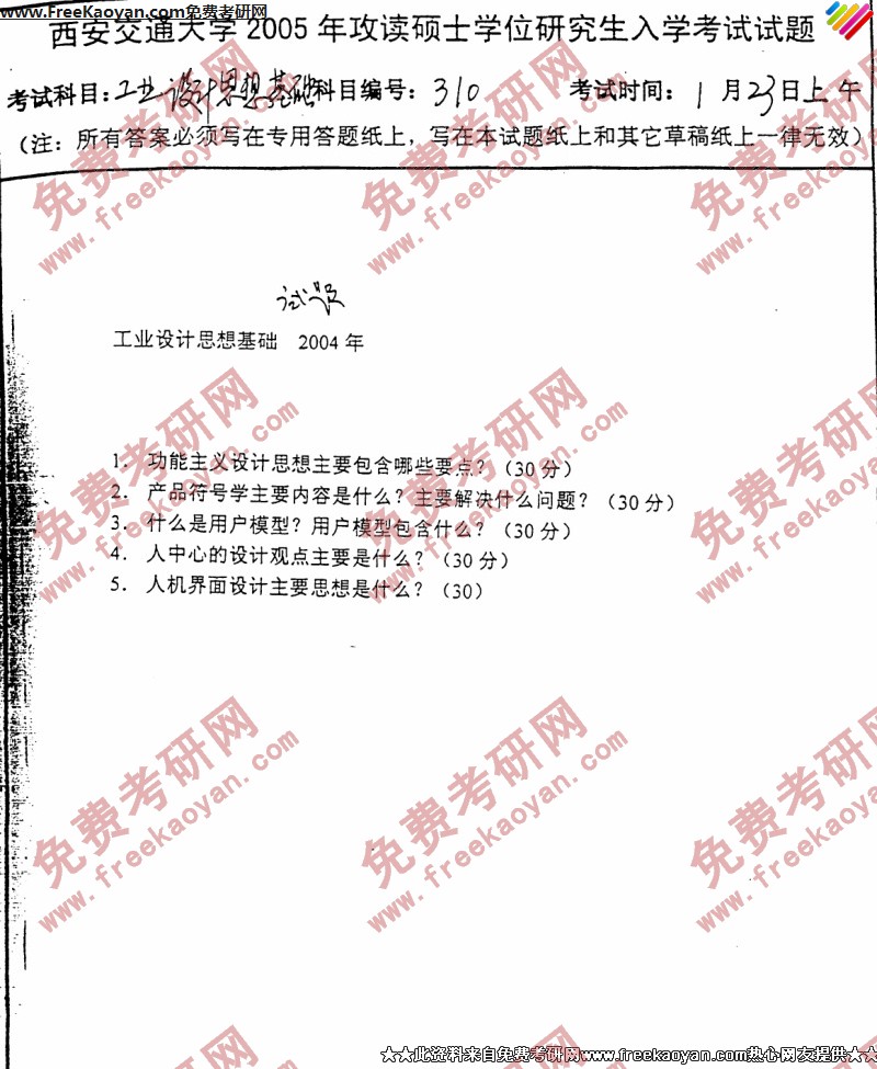 西安交通大学2005年考研真题-工业设计思想基础