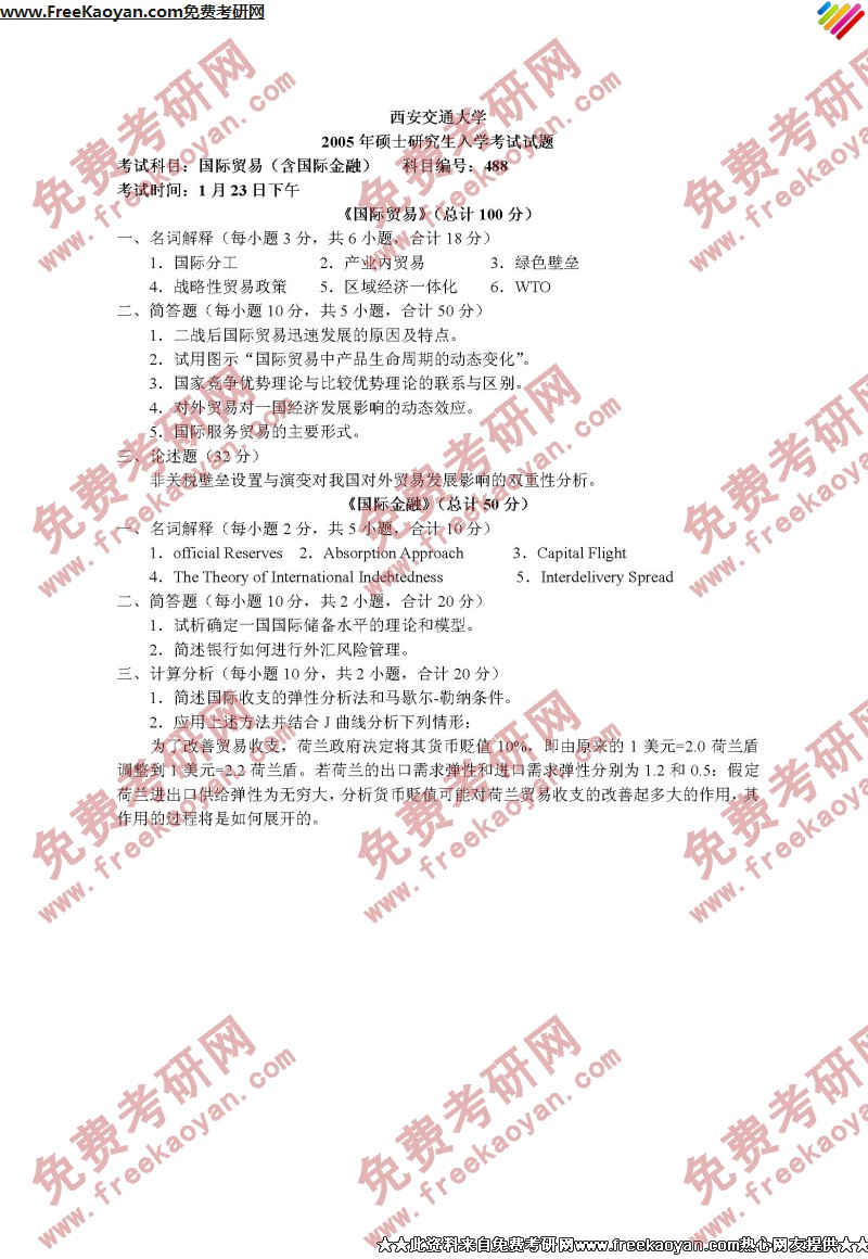西安交通大学2005年考研真题-国际贸易(含国际金融)及答案