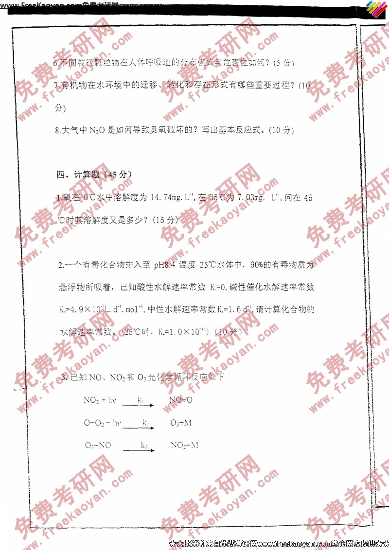 西安交通大学2005年考研真题-环境化学(3)