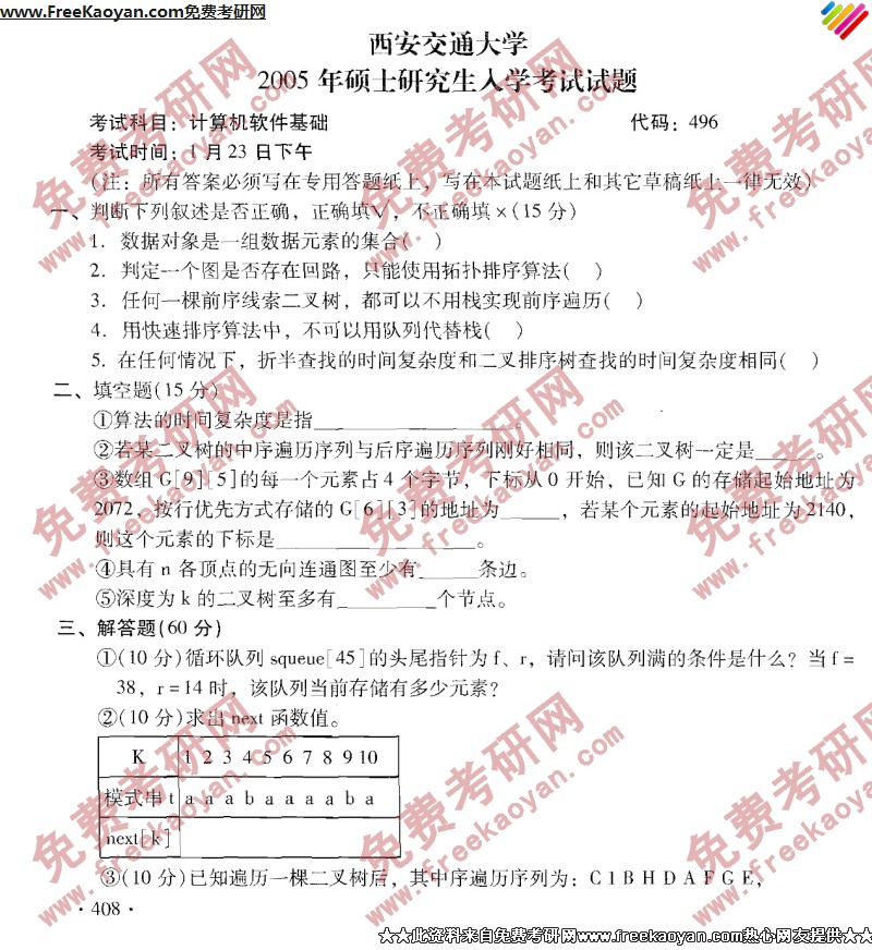 相关话题/考研真题 西安交通大学 基础 计算机软件