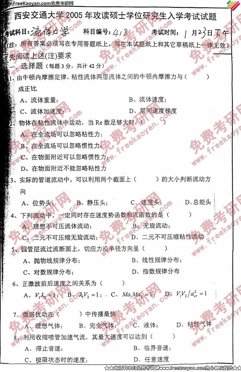 专业课考研经验 本站小编 FreeKaoyan 2018-01-23西安交通大学2005年考研真题-核工程技术基础