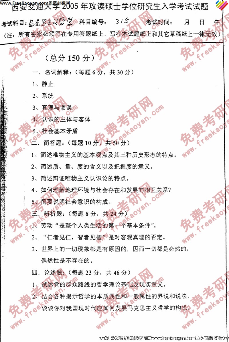 西安交通大学2005年考研真题-马克思主义哲学