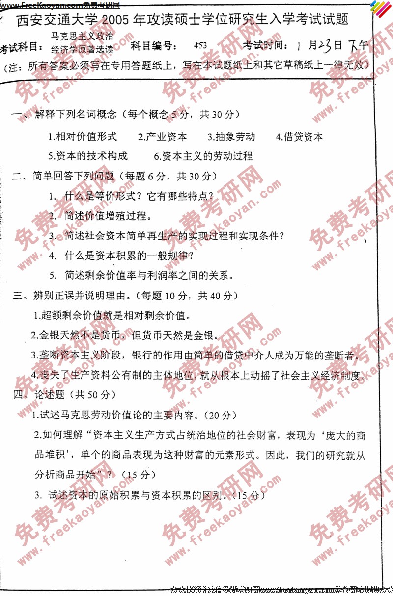 相关话题/考研真题 西安交通大学 选读 原著 马克思主义政治经济学