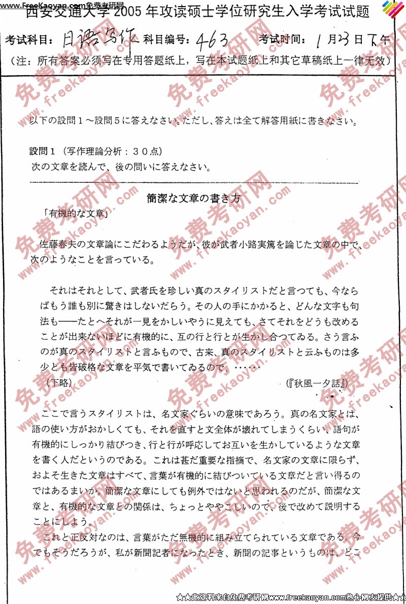 专业课考研经验 本站小编 FreeKaoyan 2018-01-23西安交通大学2005年考研真题-计算机基础