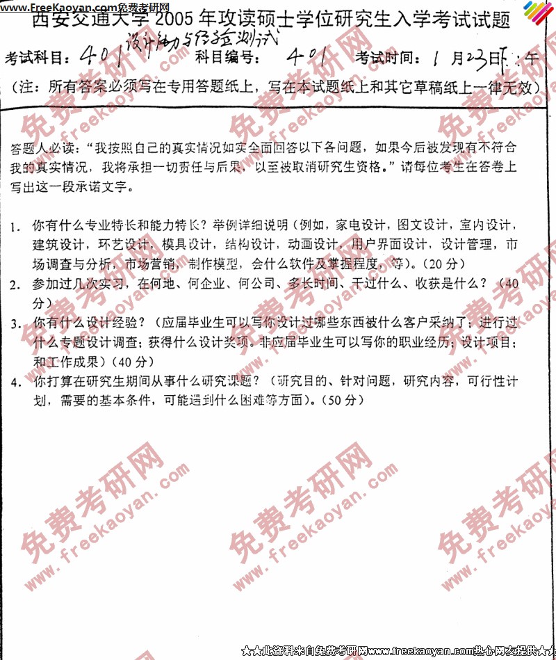 相关话题/设计 考研真题 西安交通大学 测试 经验