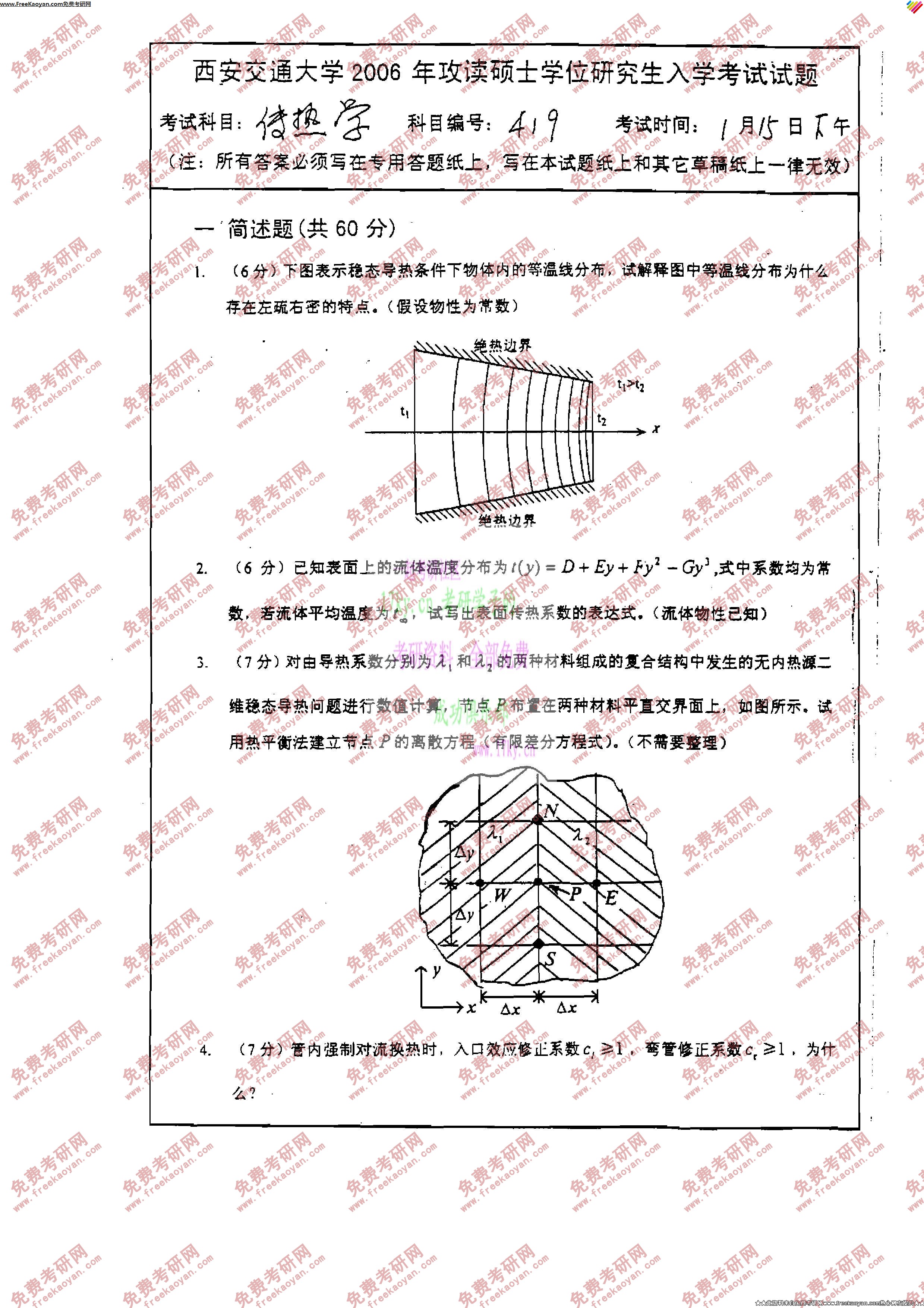西安交通大学2006年考研真题-传热学