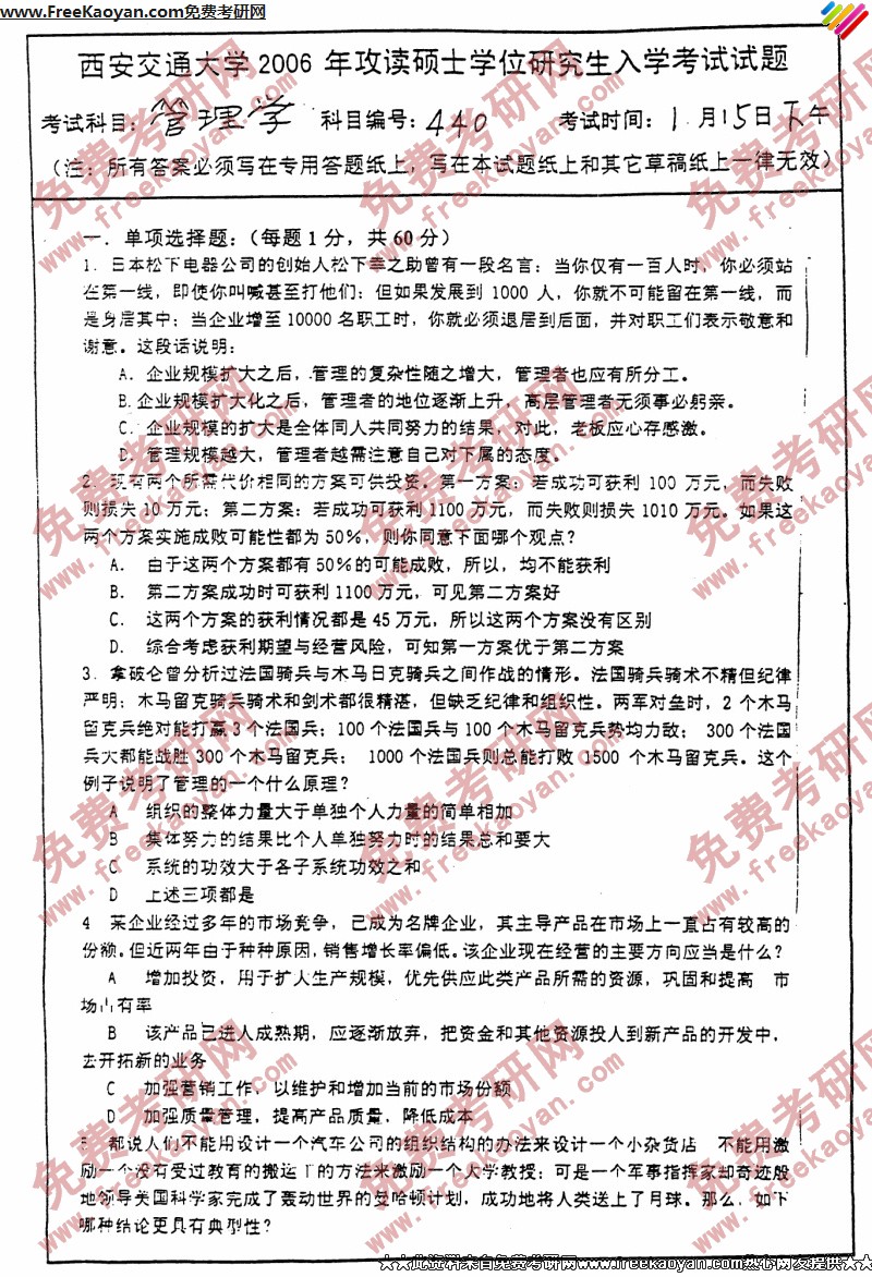 西安交通大学2006年考研真题-管理学