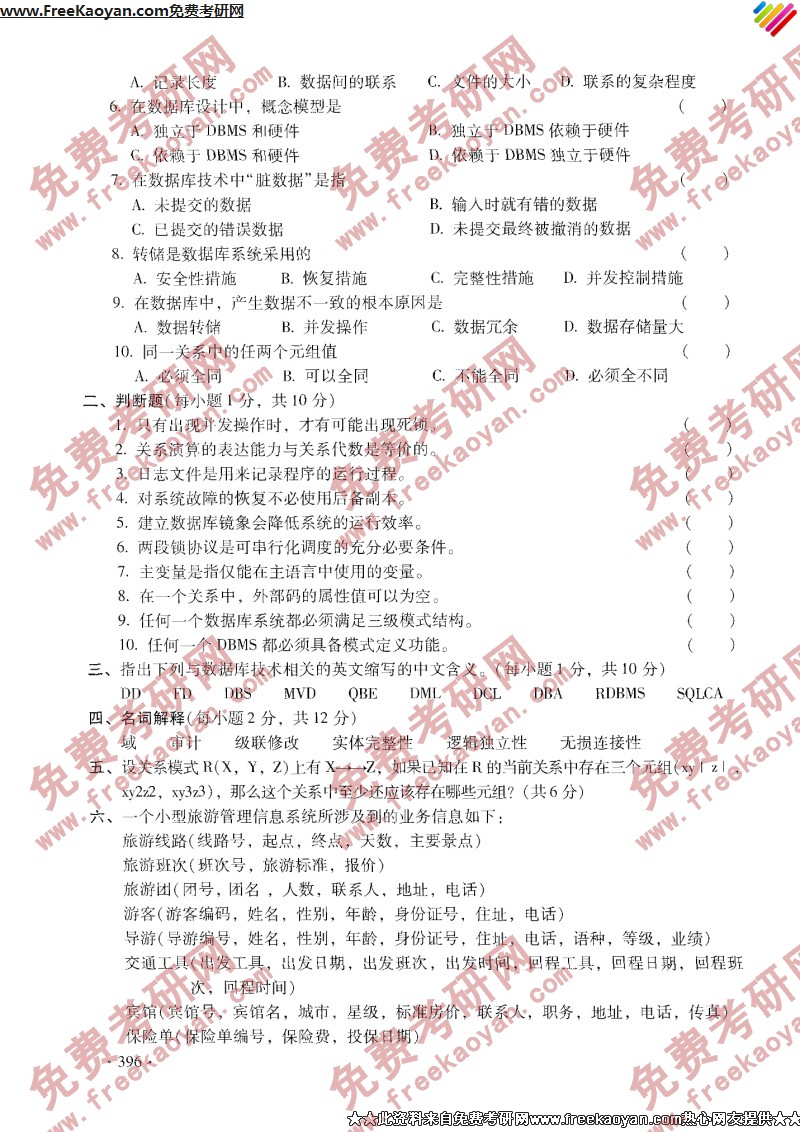 西安交通大学2001年考研真题-数据库系统