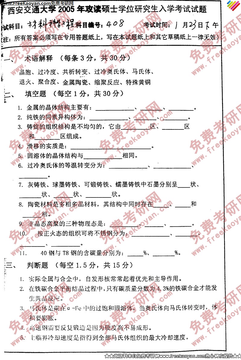 相关话题/考研真题 西安交通大学 工程 材料科学