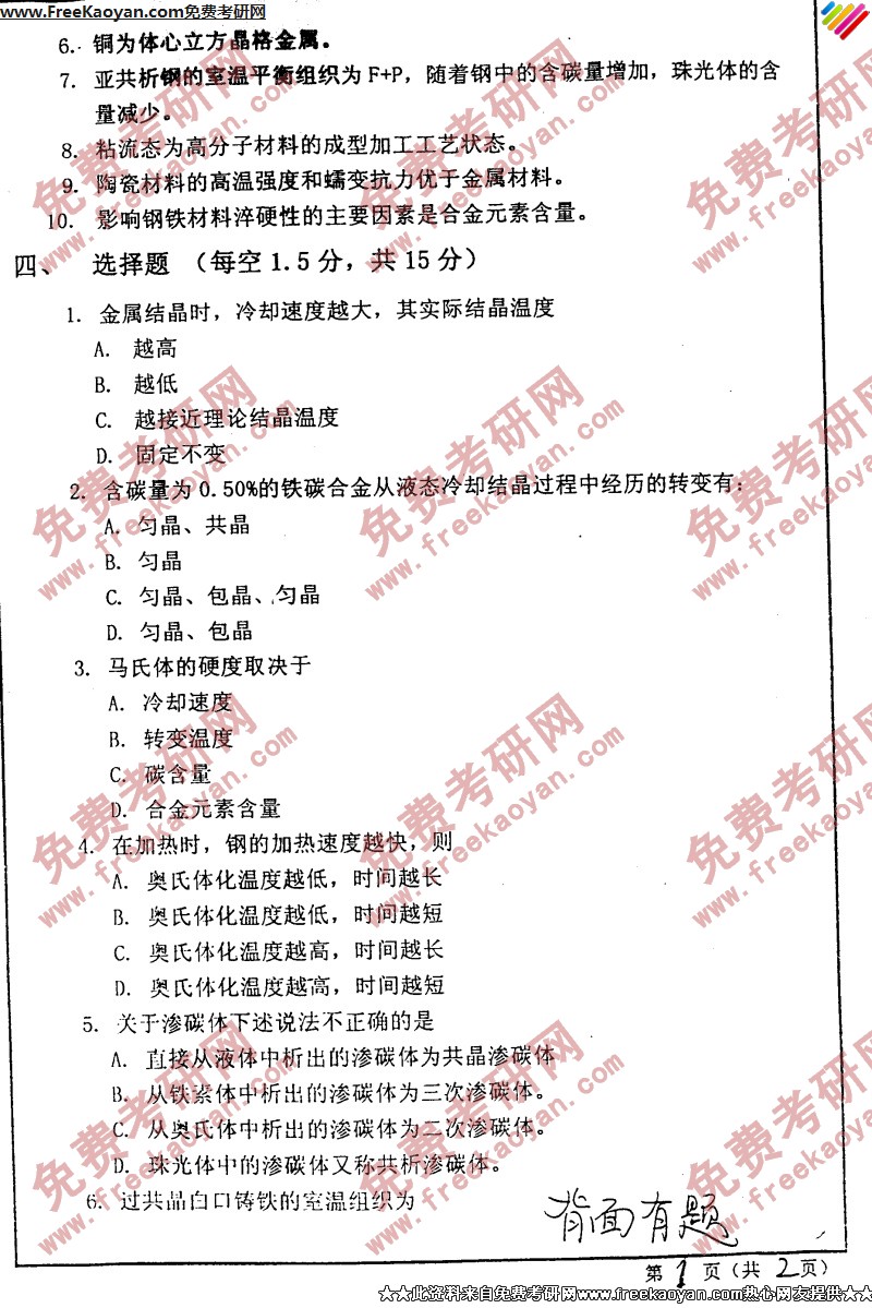 相关话题/考研真题 西安交通大学 工程 材料科学