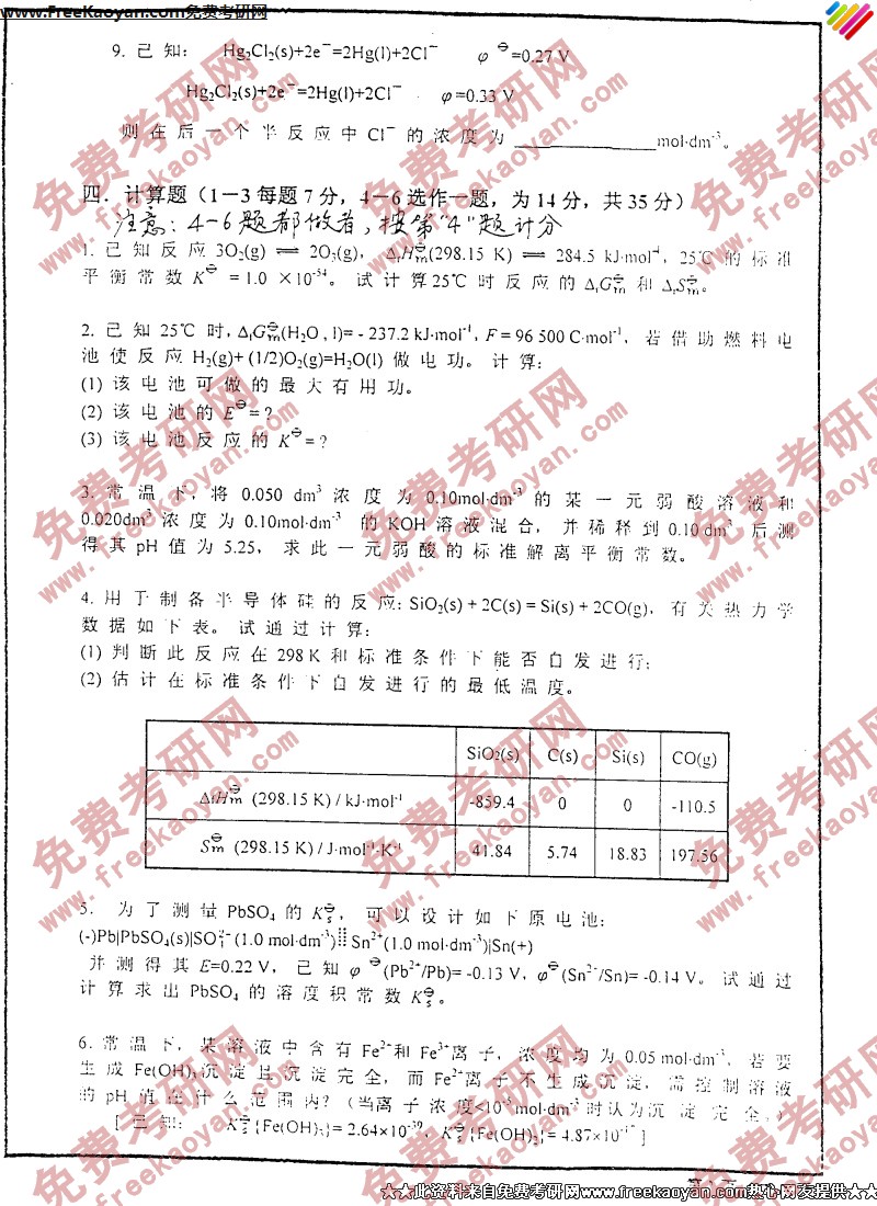 西安交通大学2005年考研真题-大学化学(6)