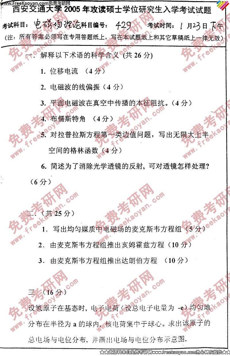 相关话题/考研真题 电磁场 西安交通大学 理论