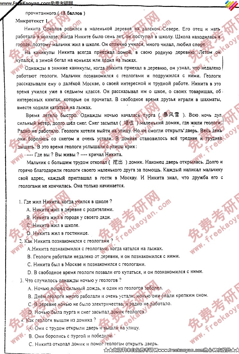 专业课考研经验 本站小编 FreeKaoyan 2018-01-23西安交通大学2005年考研真题-德语二外