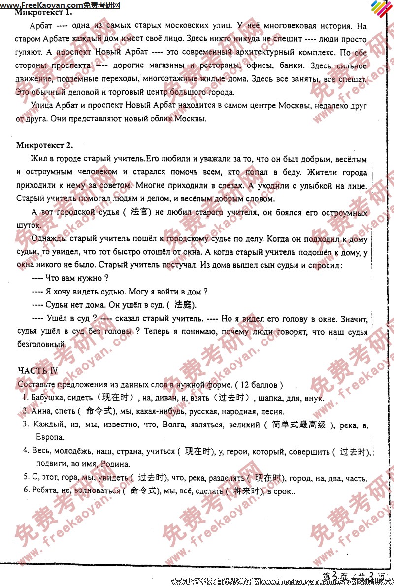 西安交通大学2005年考研真题-俄语二外(6)