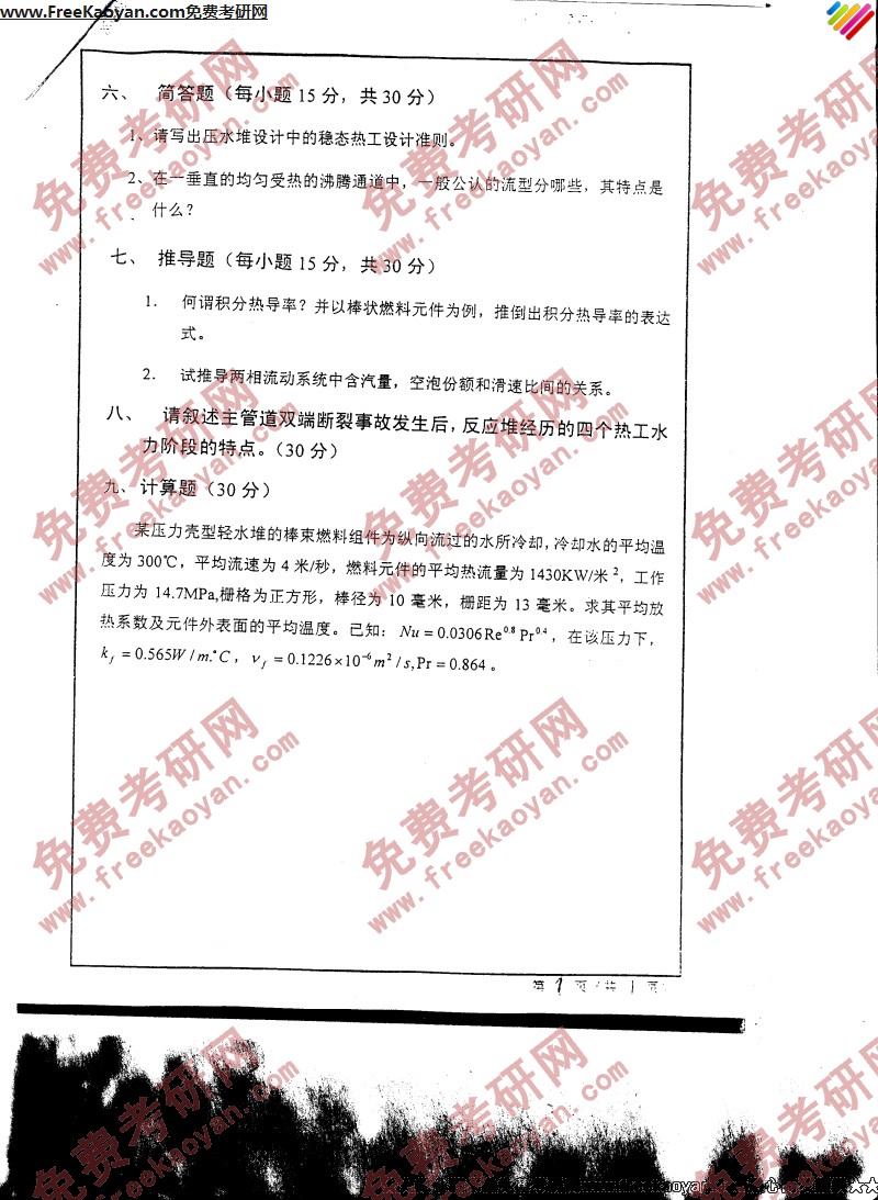 西安交通大学2005年考研真题-核工程技术基础(2)