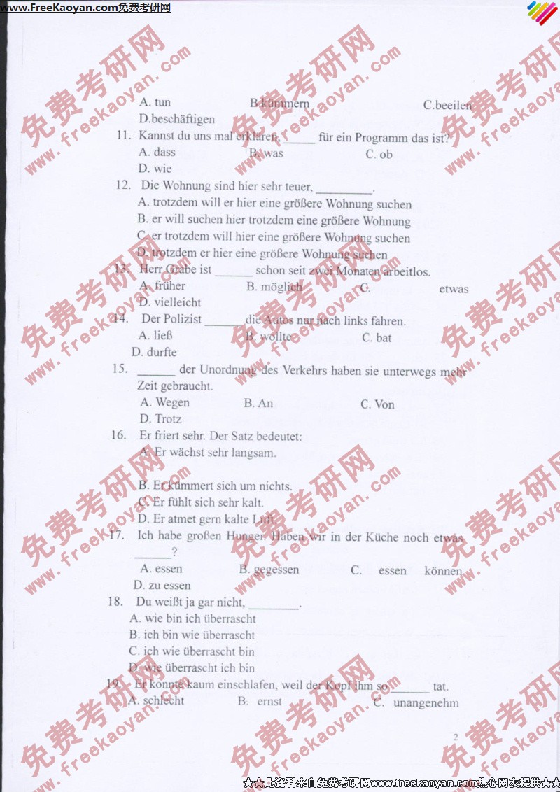 山东师范大学2007年考研真题-德语(2)