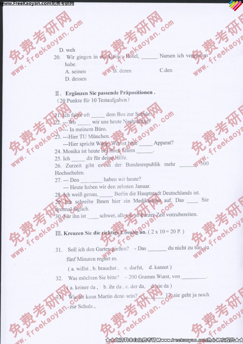 山东师范大学2007年考研真题-德语(3)