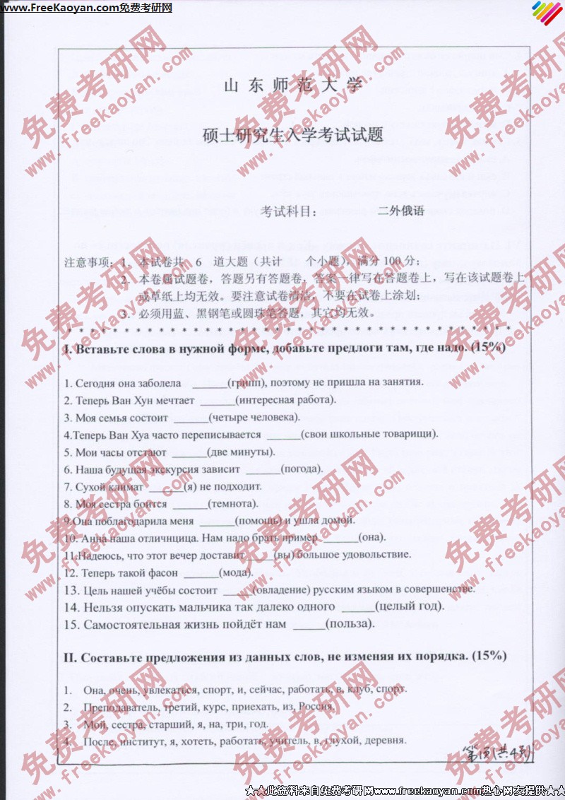 山东师范大学2007年考研真题-俄语