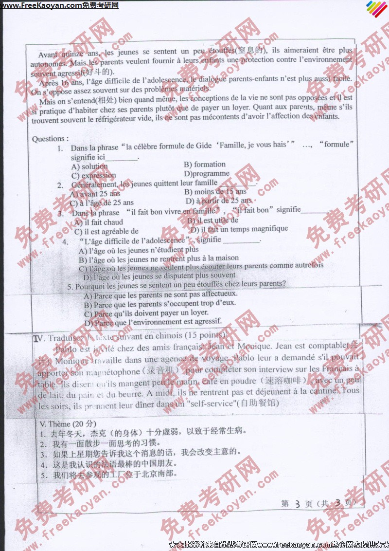 山东师范大学2007年考研真题-法语(3)