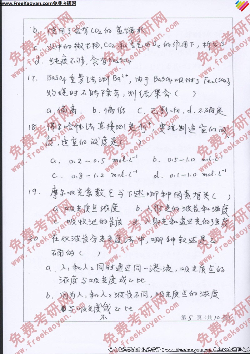 相关话题/山东师范大学 考研真题 分析化学