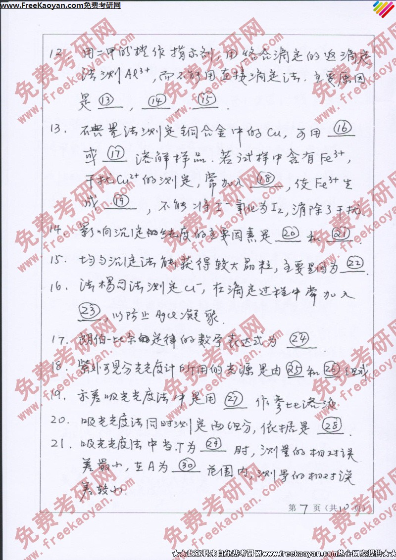山东师范大学2007年考研真题-分析化学(7)