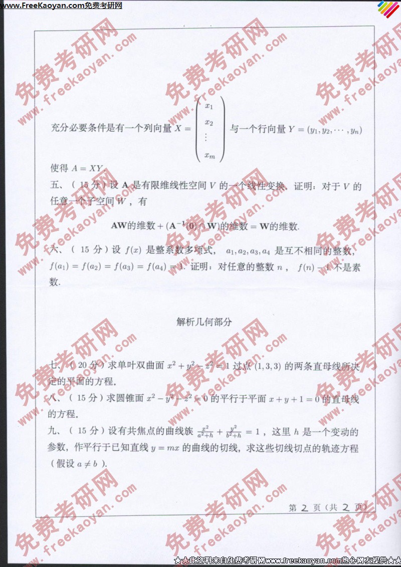 相关话题/考研真题 高等代数 山东师范大学 解析几何