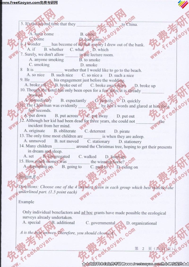 专业课考研经验 本站小编 FreeKaoyan 2018-01-23中南财经政法大学2007年考研真题-综合英语616