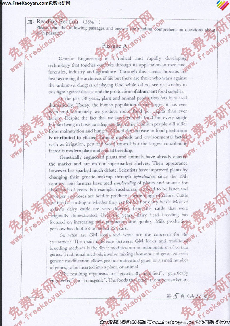 专业课考研经验 本站小编 FreeKaoyan 2018-01-23中南财经政法大学2007年考研真题-综合英语616