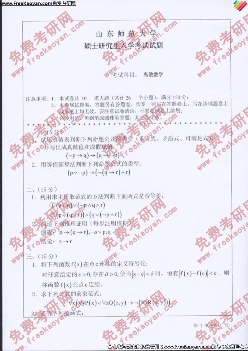 专业课考研经验 本站小编 FreeKaoyan 2018-01-23山东师范大学2007年考研真题-高等数学A