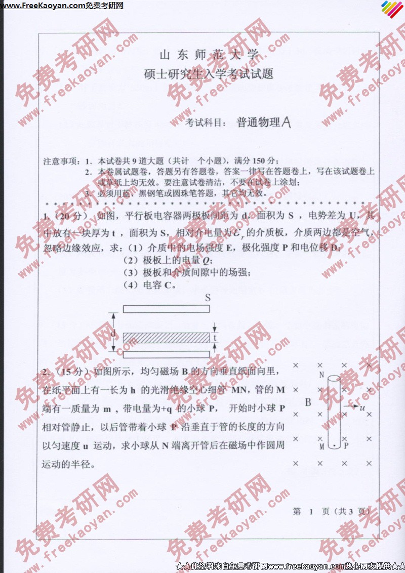 专业课考研经验 本站小编 FreeKaoyan 2018-01-23山东师范大学2007年考研真题-量子力学